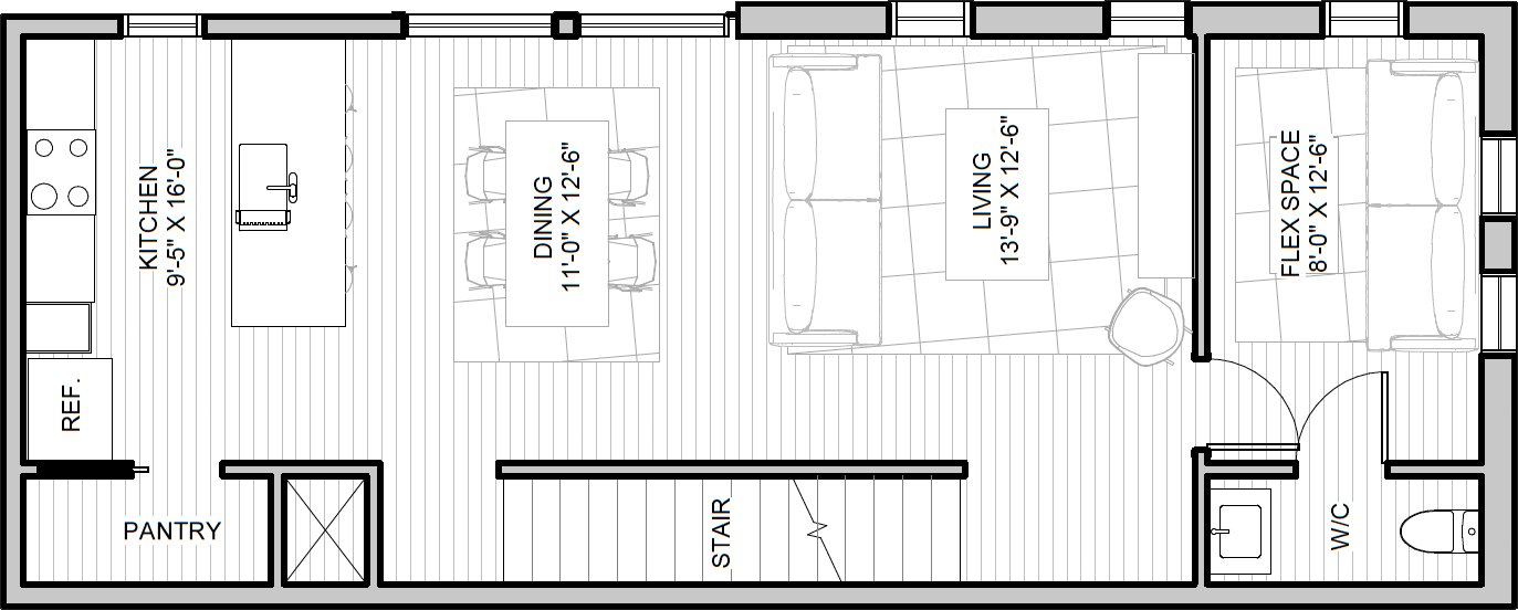 A thoughtful use of every square foot. Featuring three bedrooms, a flex space, and smart storage throughout, this plan blends modern proportions with daily practicality.